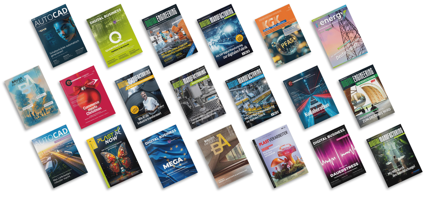 Wir veröffentlichen online und in mehrmals jährlich erscheinenden Printmagazinen die relevanten und digitalen Trends in Wirtschaft, Technik, Bau, Engineering, IT und vielem mehr. Egal welche Zielgruppe Sie ansprechen möchten, wir bieten Ihnen die passende Bühne.